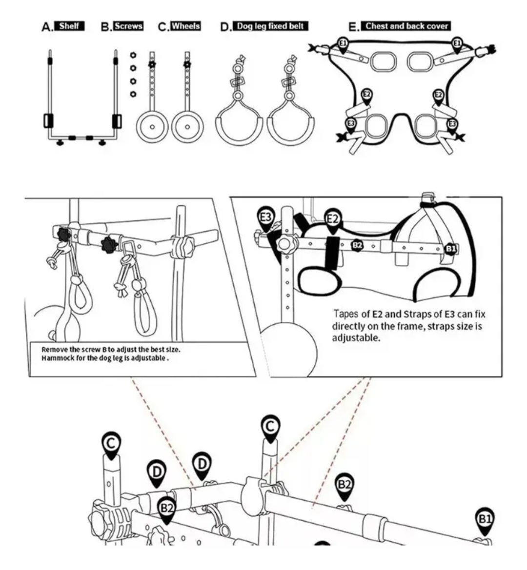 Carro Ortopédico para patas traseras.